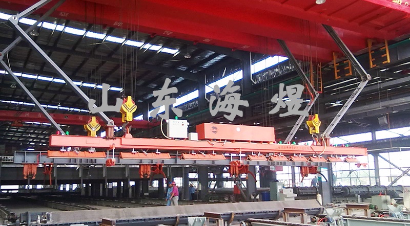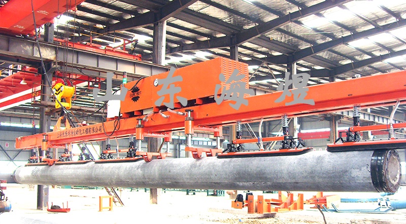 管樁真空吸盤吊運裝置可在上模打開以后利用真空吸盤吊具將管樁從下部鋼模中直接吊出,節(jié)約了一道工序。避免傳統(tǒng)的翻模工藝對管樁鋼模及管樁產(chǎn)生損傷,具有效率高,勞動強度低,節(jié)省勞動力的特點。